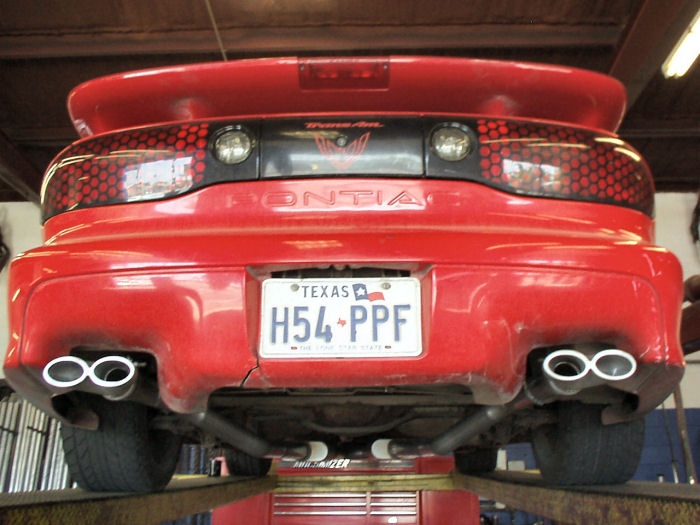 Above: 2001 TransAm true dual, 325108 Flowmasters